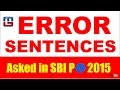 Errors Sentences always seem challenging because every other question has some new error. In this video tutorial ,we are going to tell you Error Sentences that have been asked in SBI PO 2015.