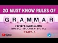 In this video we shall discuss 20 Must Know Rules Of Grammar (Part-3)For IBPS CLERK MAINS, IBPS SO, SSC CHSL & SSC CGL. This session is very important for all aspirants