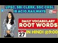 In this video we shall discuss Daily Vocabulary (Root Words) at 9:00 (In Hindi ) For UPSC, RAILWAYS, SBI CLERK, SSC,,IB. This session is very important for all aspirants
